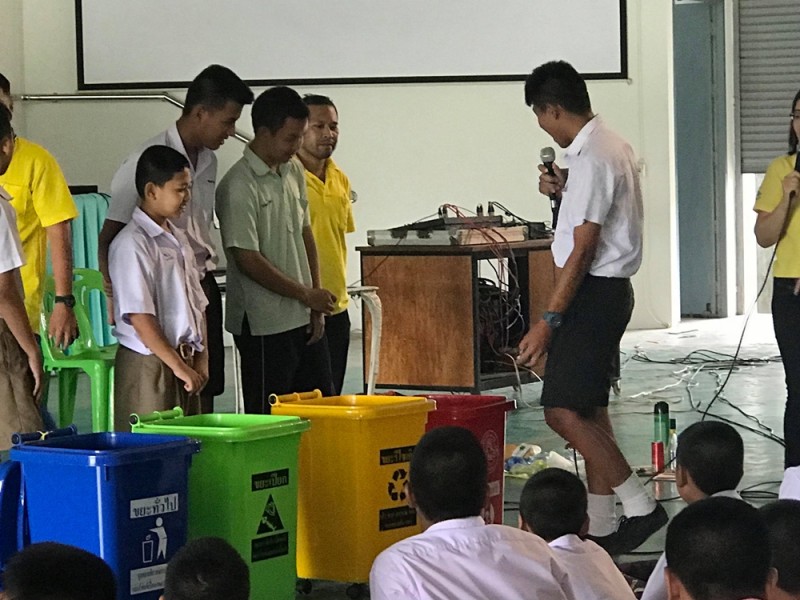 ๖ กรกฎาคม ๒๕๖๑ การให้ความรู้กับนักเรียนเรื่องการคัดแยกขยะ โดยทีมวิทยากรจากเทศบาลตำบลเขาย้อย